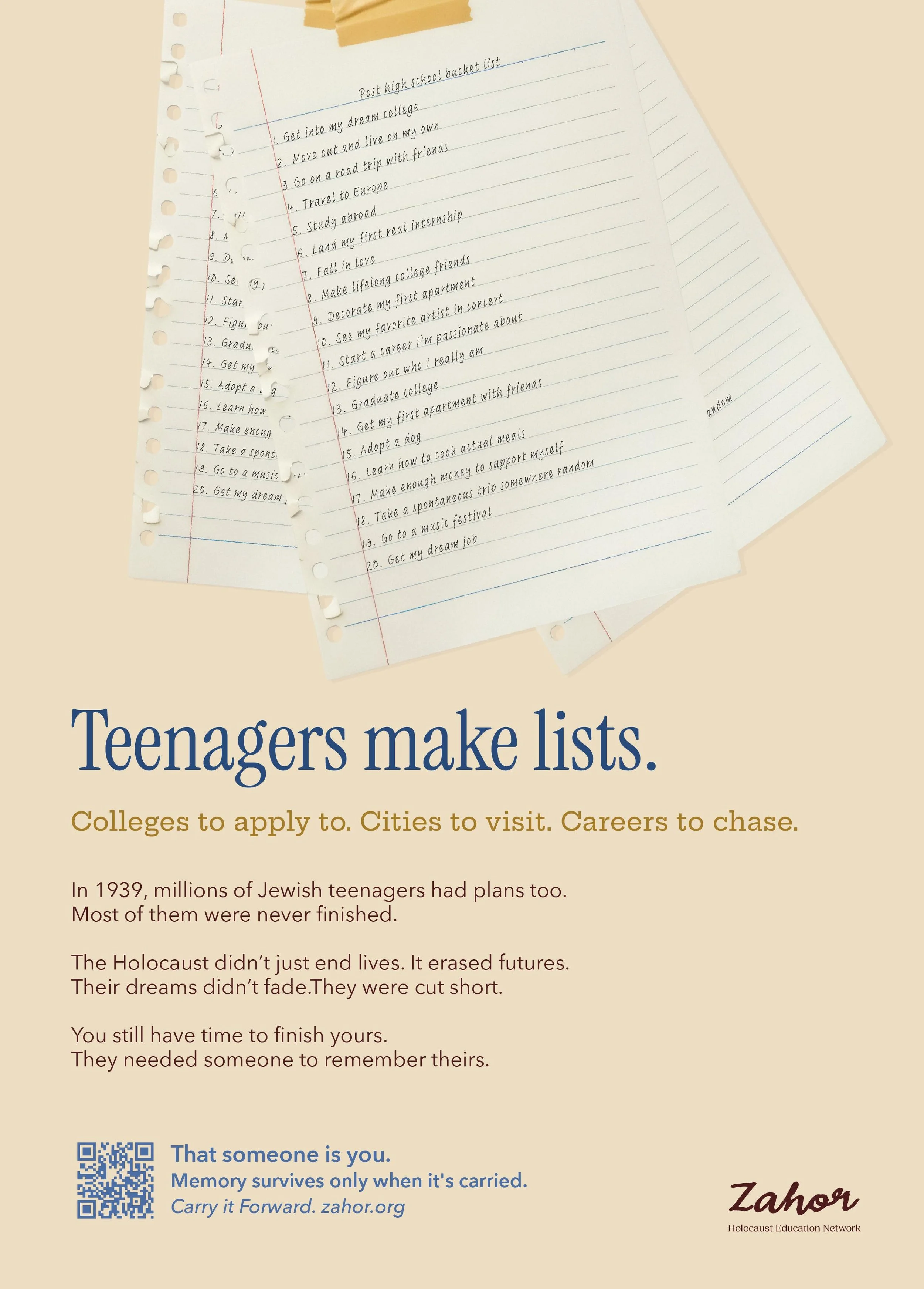 Up to 500,000 Holocaust survivors were ages 14–18, the same age as the students it targets.