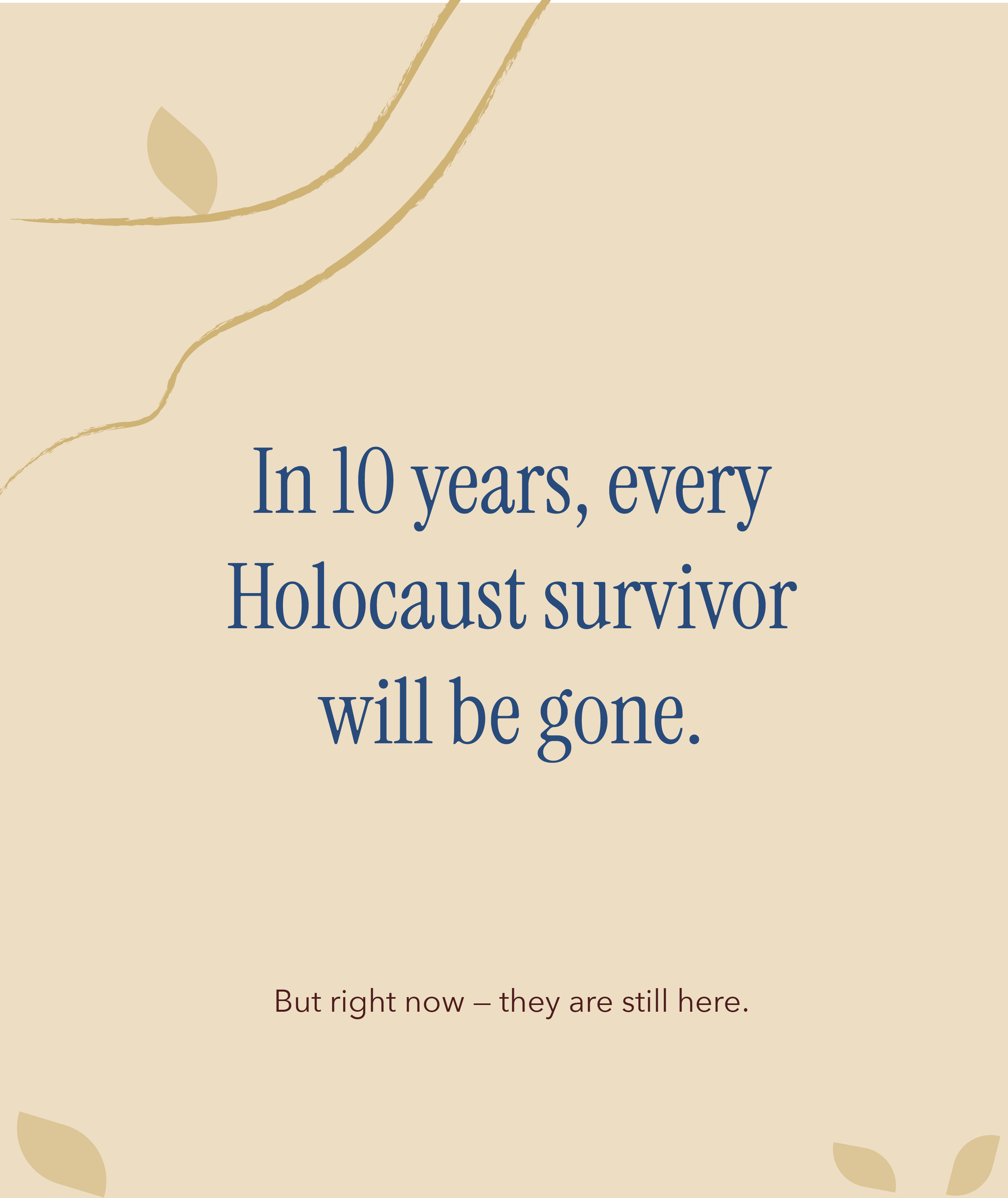 All holocaust survivors will be gone in 10 years.